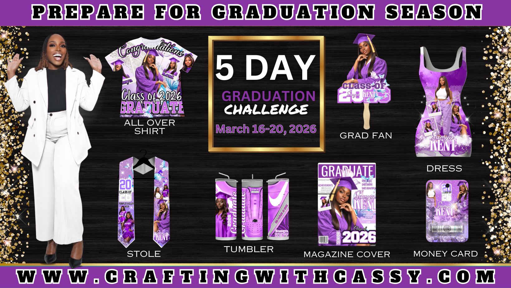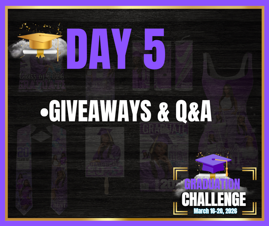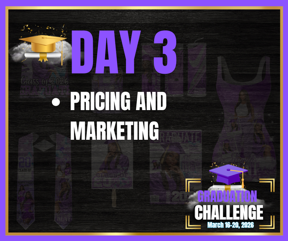 Each day from March 16th until the 20th, you'll be able to join our exclusive LIVE streams and get access to world-class coaches who'll take your hand and show you how to craft, market, and sell grad season custom items with ease.